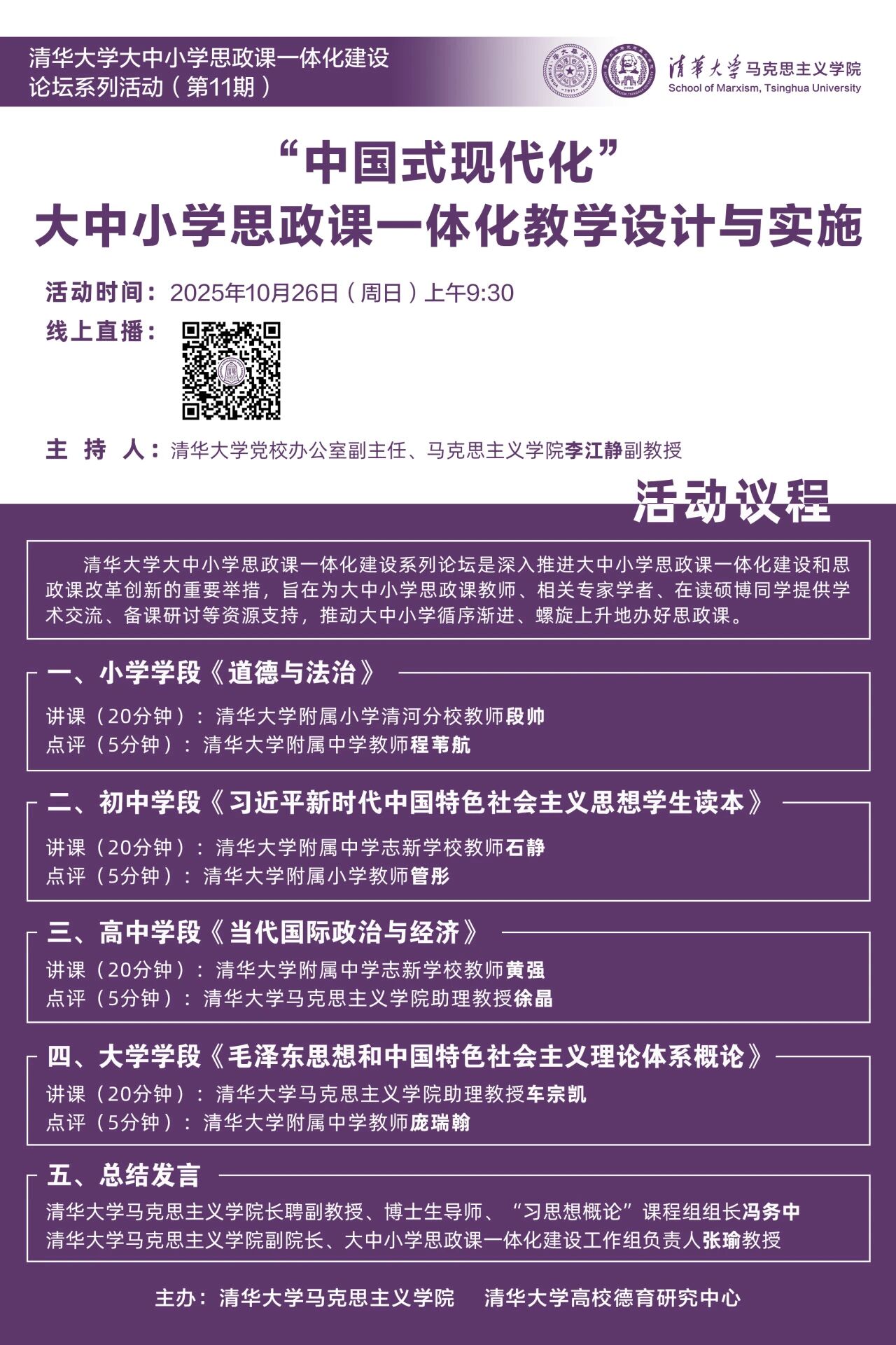 主办:清华大学大中小学思政课一体化建设共同体、清华大学马克思主义学院、清华大学高校德育研究中心