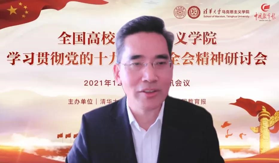 12 月 12 日,由清华大学马克思主义学院、《中国教育报》共同主办的“全国高校马克思主义学院学习贯彻党的十九届六中全会精神研讨会”在清华大学举办。教育部社科司副司长宋凌云,清华大学党委副书记向波涛,中国教育报刊社党委书记、社长翟博出席会议并分别在开幕式上致辞,开幕式由清华大学马克思主义学院院长艾四林主持。