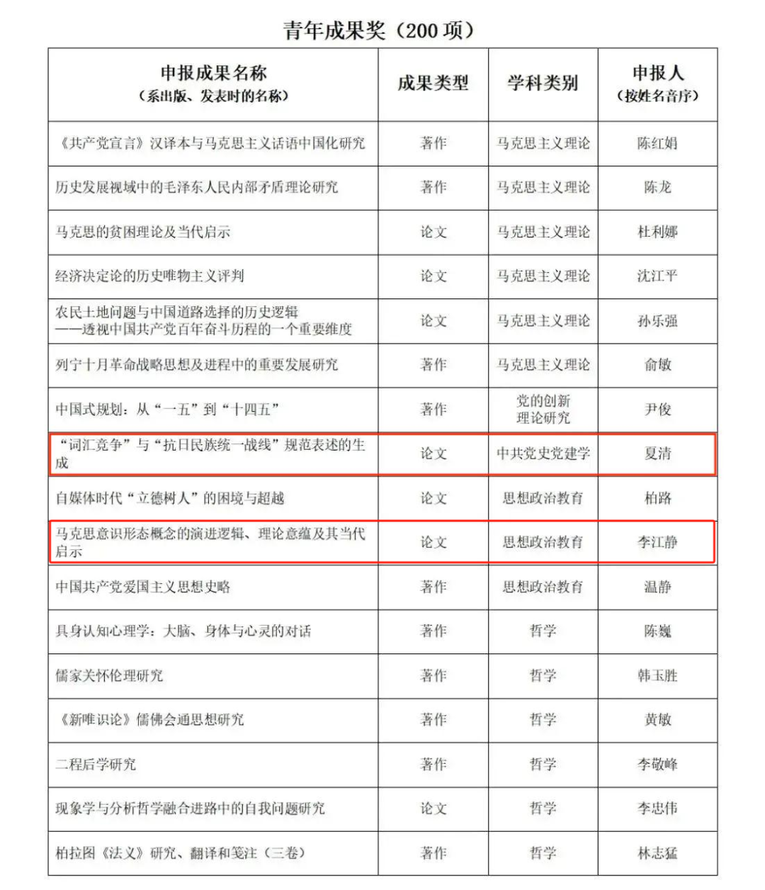 马克思主义学院8项成果入选,其中一等奖1项,二等奖3项,三等奖1项,青年成果奖3项。具体名单如下: