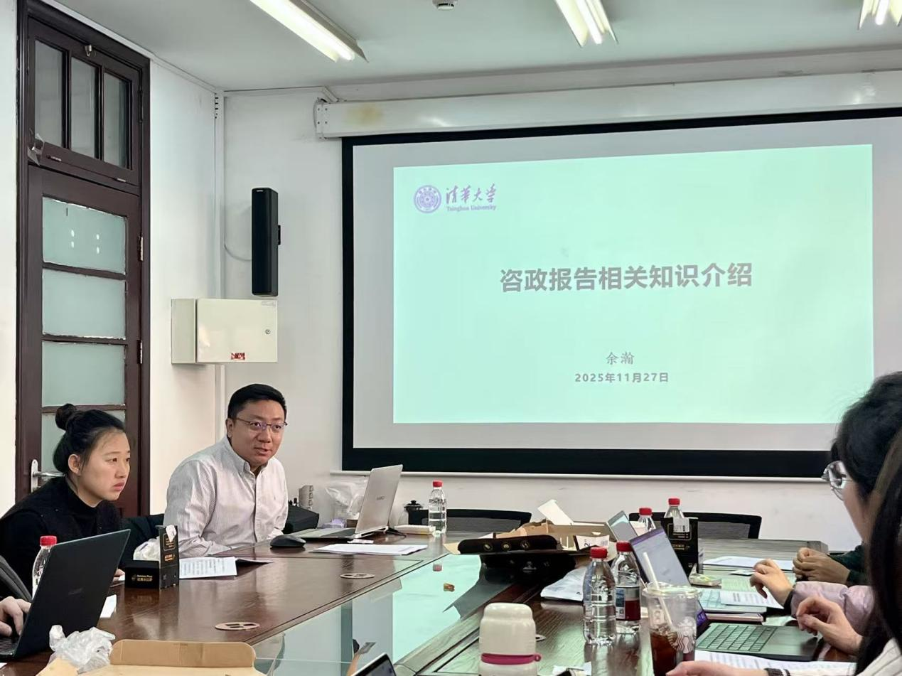 2025年11月27日,清华大学马克思主义学院博士后学术沙龙第三期顺利举行。本期沙龙的交流主题是“资政报告撰写与注意事项”,邀请在站博士后余瀚老师作主题分享,学院副院长吴俊老师参与讨论。